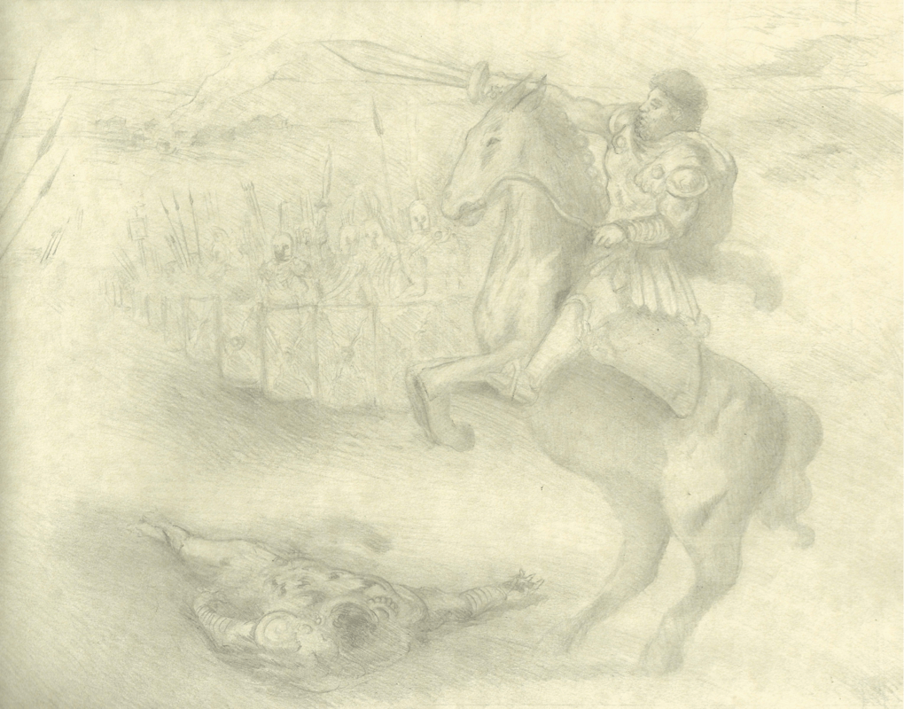 El ejercito de Albino fue derrotado y este muerto. S.Severo cabalgó por encima del cuerpo decapitado de Albino delante de las tropas.